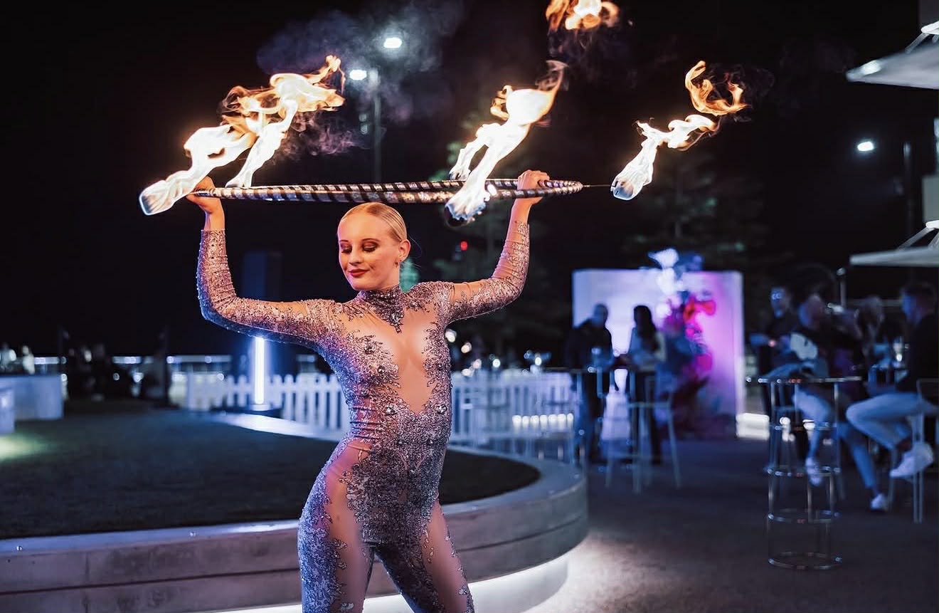 Premium fire performance experience for luxury events, featuring skilled artists in fire breathing and fire dancing, creating bold, immersive moments that captivate any audience.